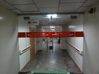 これは、集中治療室の入口です。同じ建物なのに内装が全く異なります。ここだけ近代化されています。なぜ?答えは日本のODA (Official Development Assistance) の資金で建てられたセクションだからです。見にくいけど、自動ドアの左上にJAPANとODAのロゴがあります。